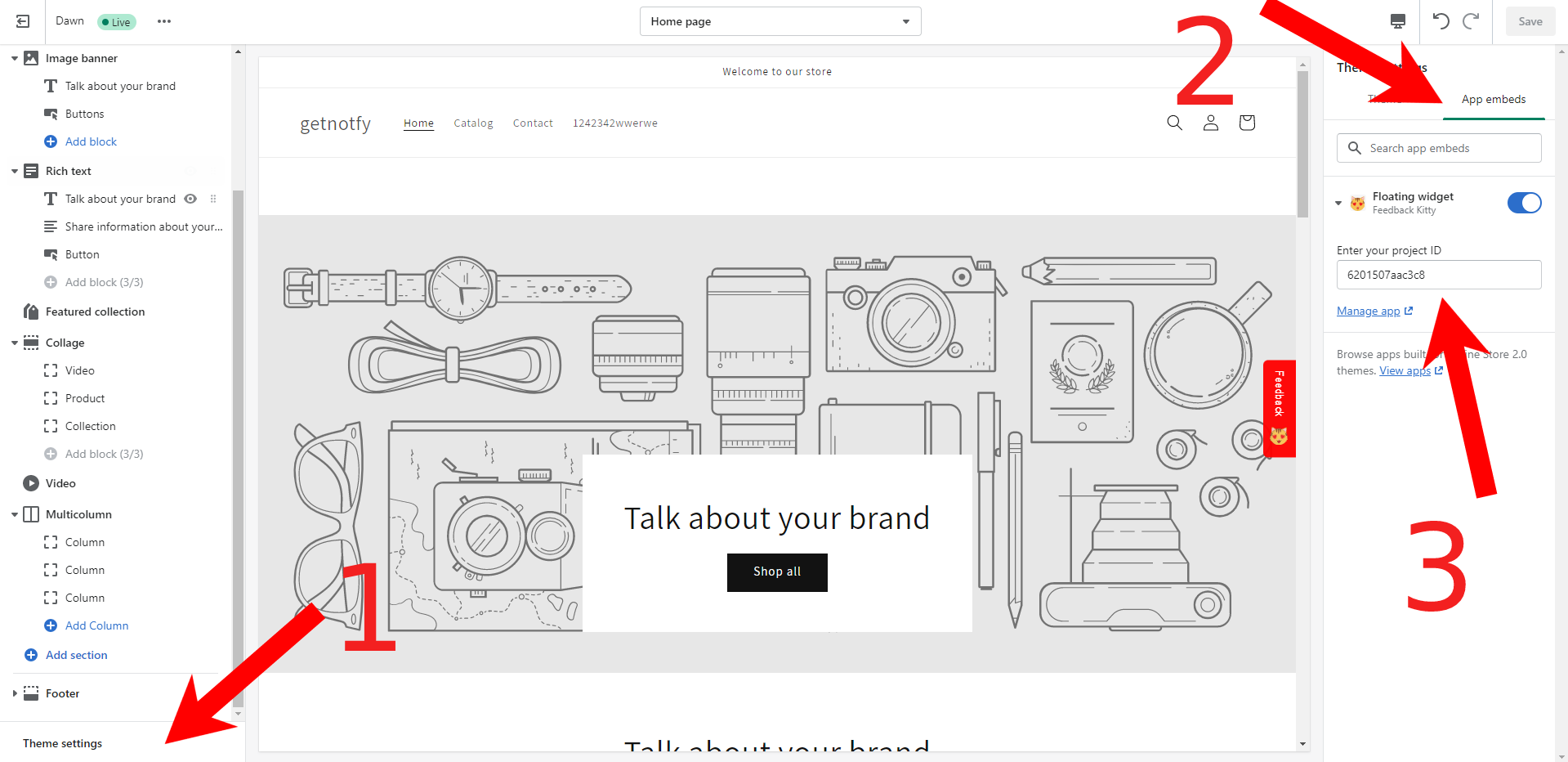 Finally, go to store link (https://getnotfy.myshopify.com),the widget is ready to collect feedback to the added project ID.